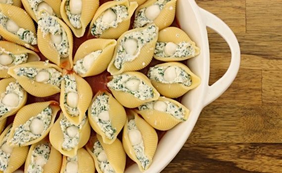 מצרכים: 20 קונכיות פסטה גדולות, מספר 313, מסוג קונקילי או 40 קונכיות קטנות, מספר 50 10 כפות גבינת ריקוטה טרייה 1 כף רסק פלפלים אדומים 2 כפיות קוביות קטנות של פלפל ירוק או צהוב 1/2 כפית קליפת לימון מגורדת […]