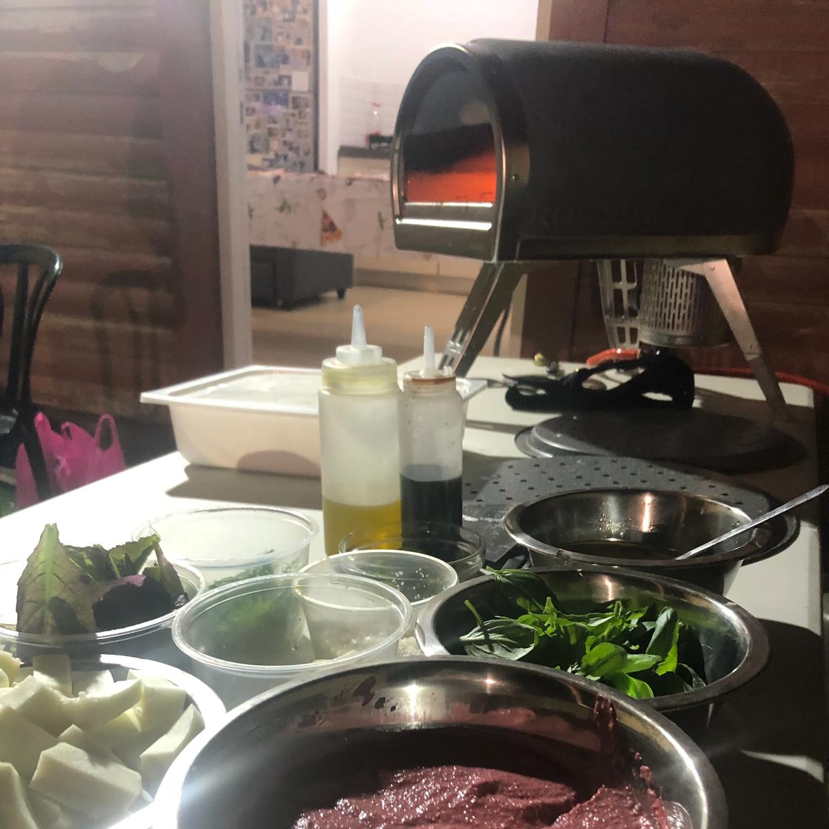 - פיצה תימנית סמנה רסק עגבניות מטובל סלסה של חריפים מוצרלה מלח ים בצל סגול קצוץ וגבינת עיזים