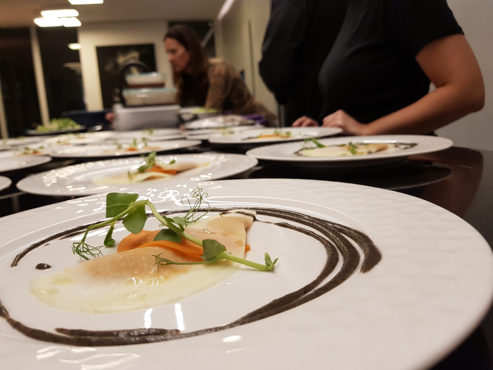 •קרפצ'ו פילה בקר עם שום קונפי צנוניות רוקט ובלסמי.
