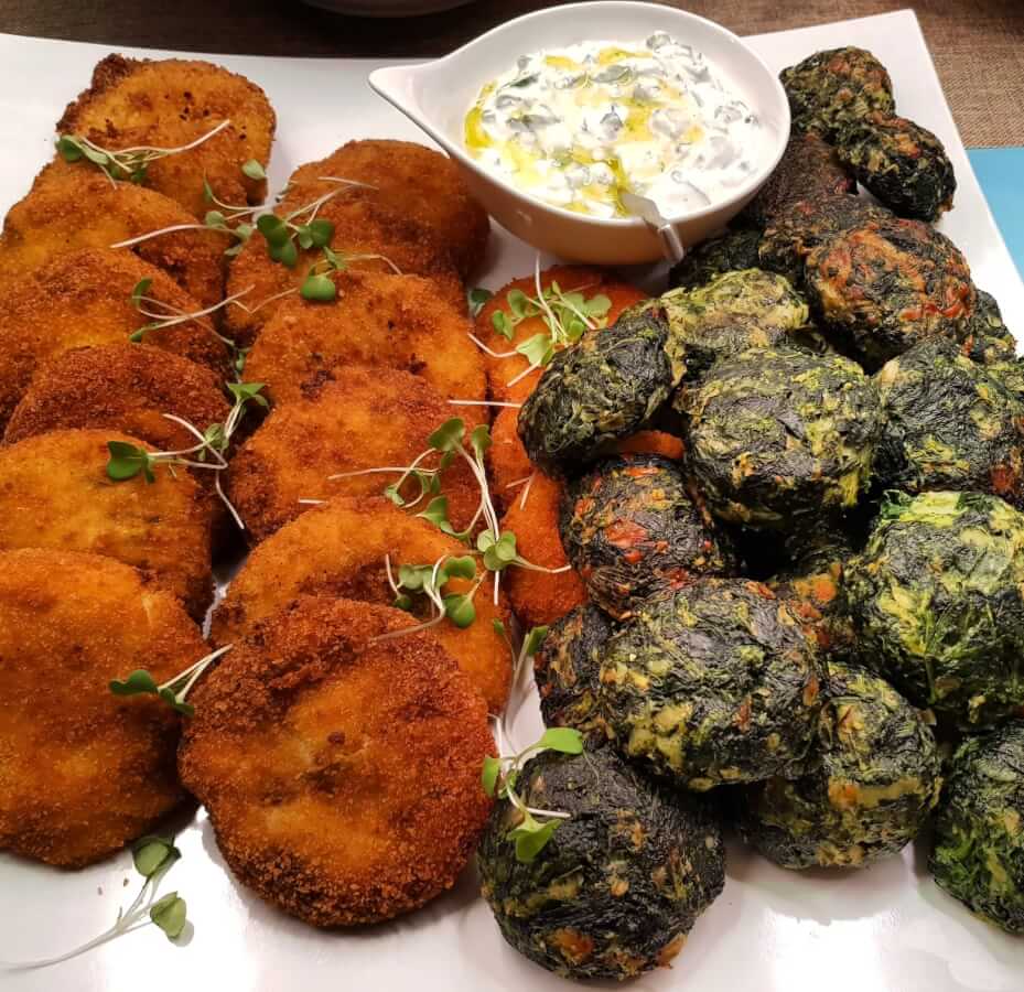 - עגבנייה ממולאת בבורגול גס, עשבי תיבול, אגוזים , זיתי קלמטה , מוקרמת במוצרלה מעושנת.