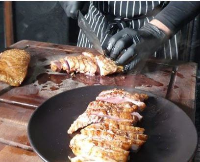 • סלייסים של חזה מולארד מהפחמים עם צילי נענע.