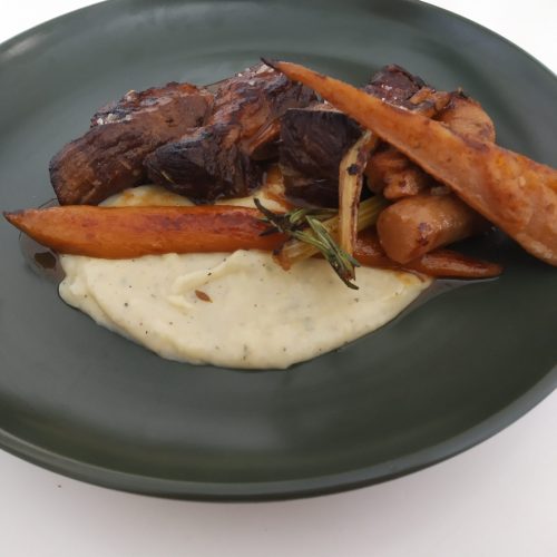 פילה ברוטב ברנדי שום על מצע אנטי פסטי